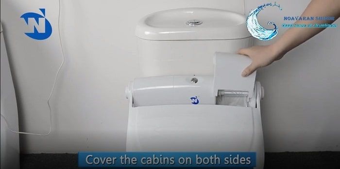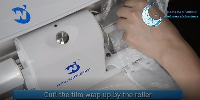 3.یک رول پلاستیکی را در سمت راست کاور زن اتوماتیک سرویس فرنگی قرار دهید.