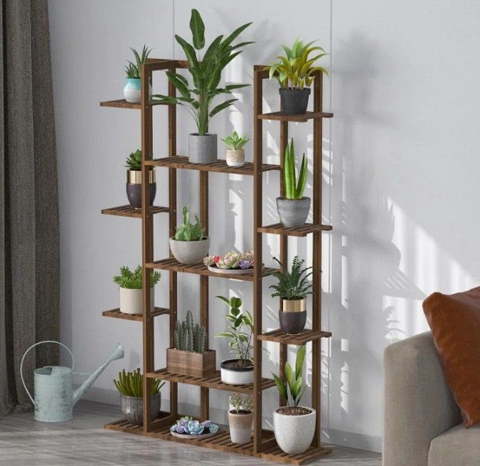برای سبزتر شدن خانه خود از قفسه استفاده کنید و گلدان‌ها را به حالت‌های مختلف بر روی آن قرار دهید. قفسه‌هایی را بر روی دیوارها ایجاد کنید و گلدان‌هایتان را روی آن‌ها قرار دهید.