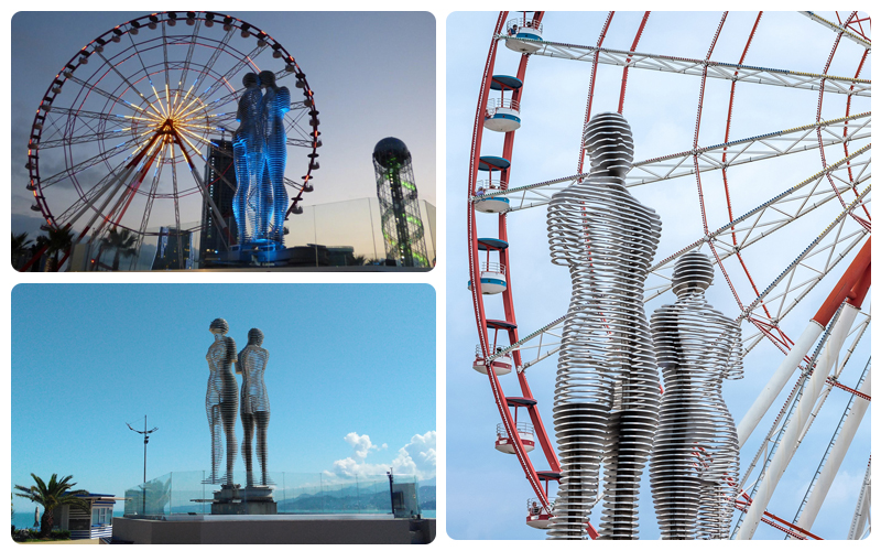 مجسمه علی و نینو امروزه به یکی از نمادهای گرجستان و باتومیتبدیل شدهاند. این مجسمهها حول محوری مشخص در گردش هستند و هر چند دقیقه یکبار به هم میرسند و از داخل یکدیگر عبور میکنند، گویی هم را در آغوش گرفته و مجددا از هم دور میشوند. اگر به گرجستان سفر کردید، بازدید از مجسمههای علی و نینو را فراموش نکنید.