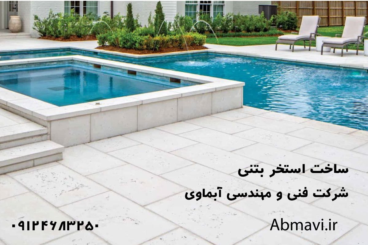 گروه مهندسی آبماوی، یکی از پیشروان در زمینه ساخت و اجرای استخر بتنی، با استفاده از طراحی‌های مدرن و زیبا، توانسته است رضایت حداکثری مشتریان خود را به دست آورد. این گروه با اجرای اقتصادی و باکیفیت، به همراه مشاوره تخصصی توسط متخصصین حوزه ساخت استخر بتنی، بهترین انتخاب را برای ساخت استخری مناسب ارائه می‌دهد. مراحل ساخت استخر بتنی شامل خاکبرداری، اجرای شبکه آرماتور، لوله‌کشی، سیمانکاری و کاشی کاری است.