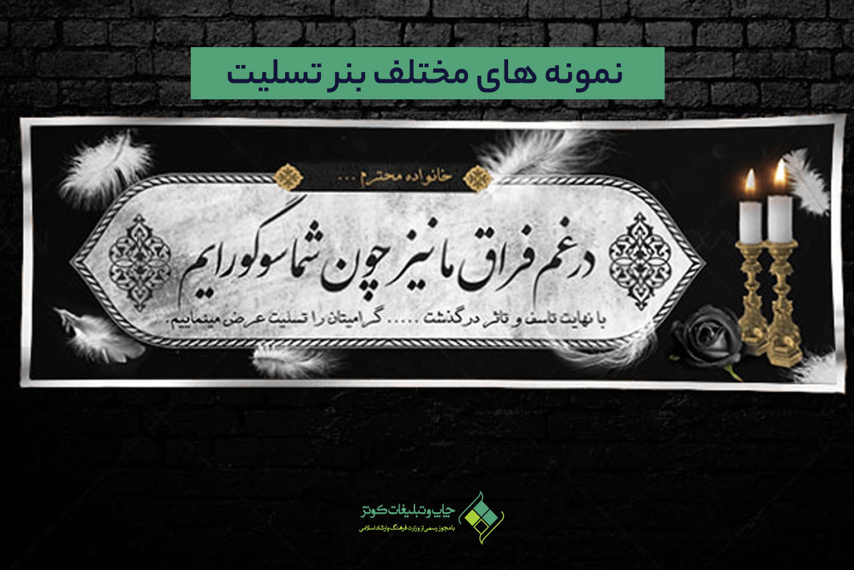 چاپ بنرتسلیت وسیله ای برای ابراز همدردی و عرض تسلیت به بازماندگان در غم از دست دادن عزیزان شان هستند. این بنرها در طرحها و اندازههای مختلف و با استفاده از متنها، تصاویر و اشعار مختلف طراحی میشن. در اینجا به چند نمونه از انواع بنرهای تسلیت اشاره کرده ایم: