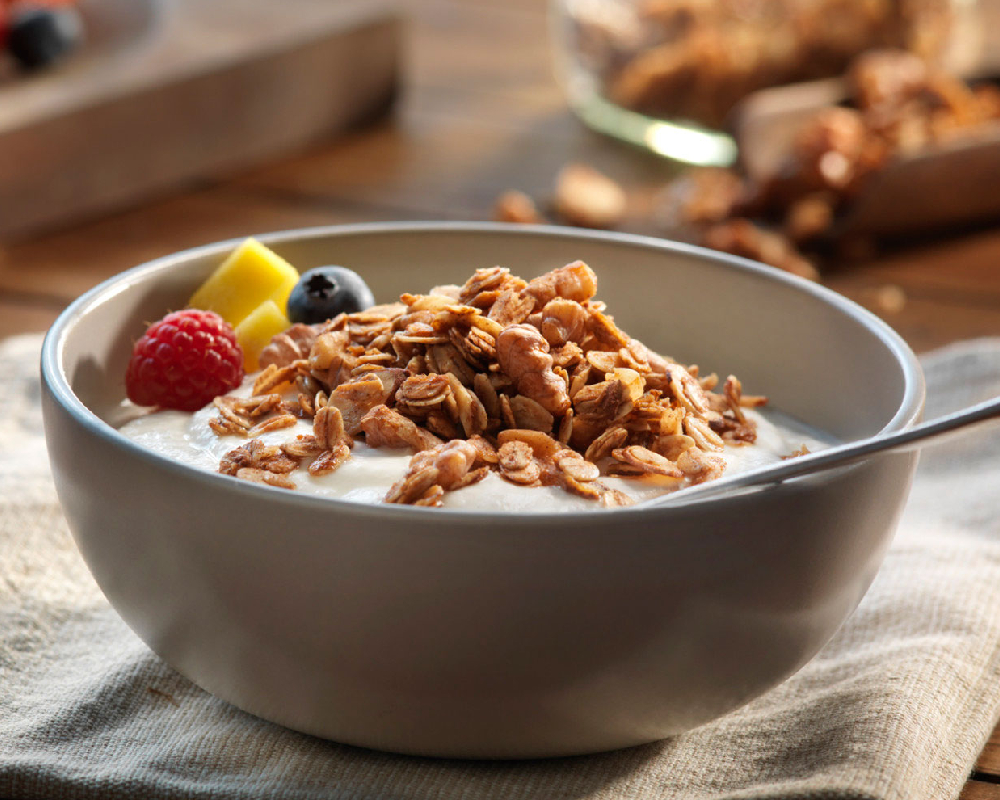 برای استفاده از خواص گرانولا در وعده صبحانه میتوانید آن را با شیر کمچرب، ماست یونانی یا ماست میوهای ترکیب کنید. در صورتی که گیاهخوار هستید میتوانید گرانولا را با شیرهای گیاهی مانند شیر سویا و شیر بادام ترکیب کنید.